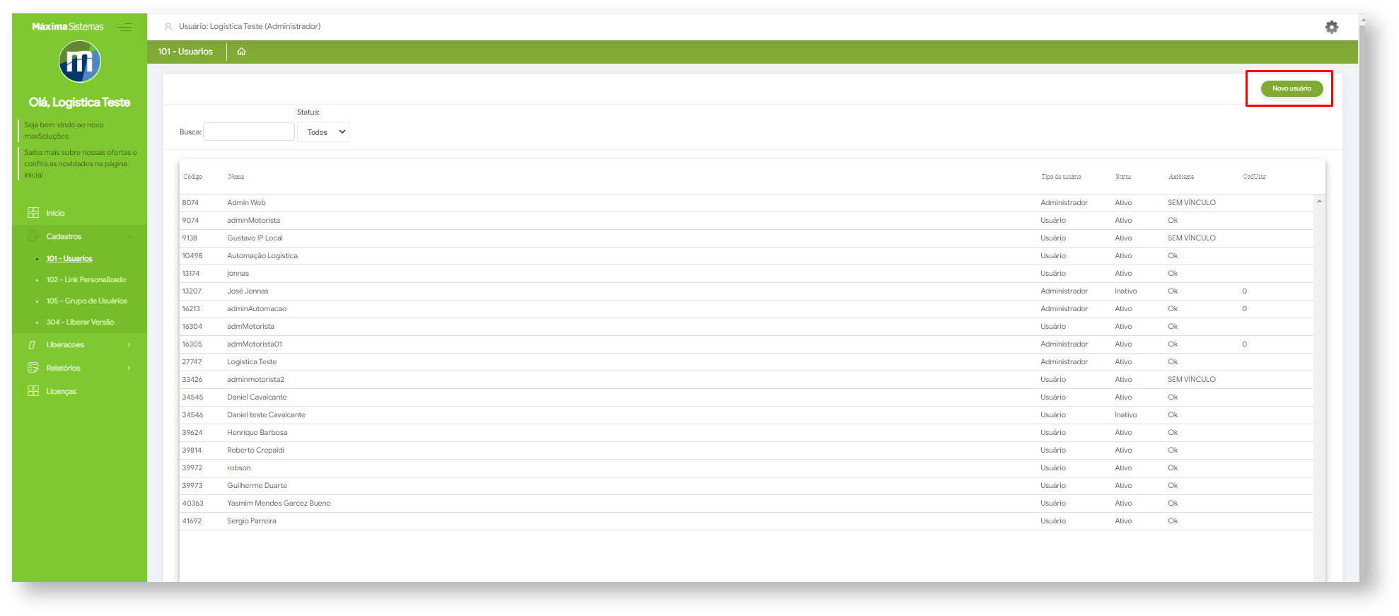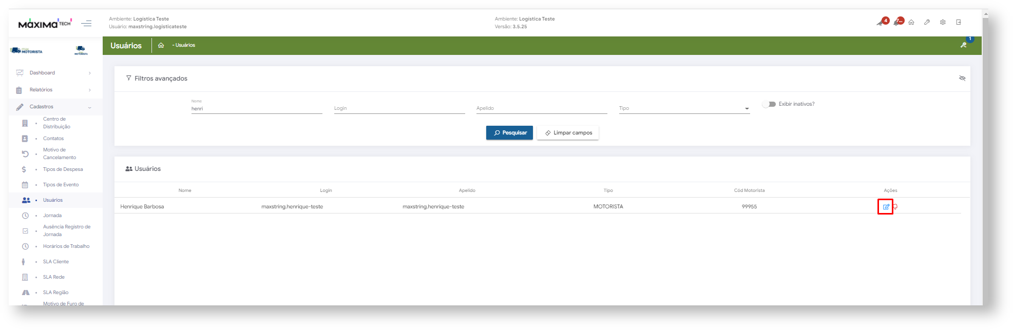 - Acessar MaxMotorista > Menu > Cadastro > Usuários