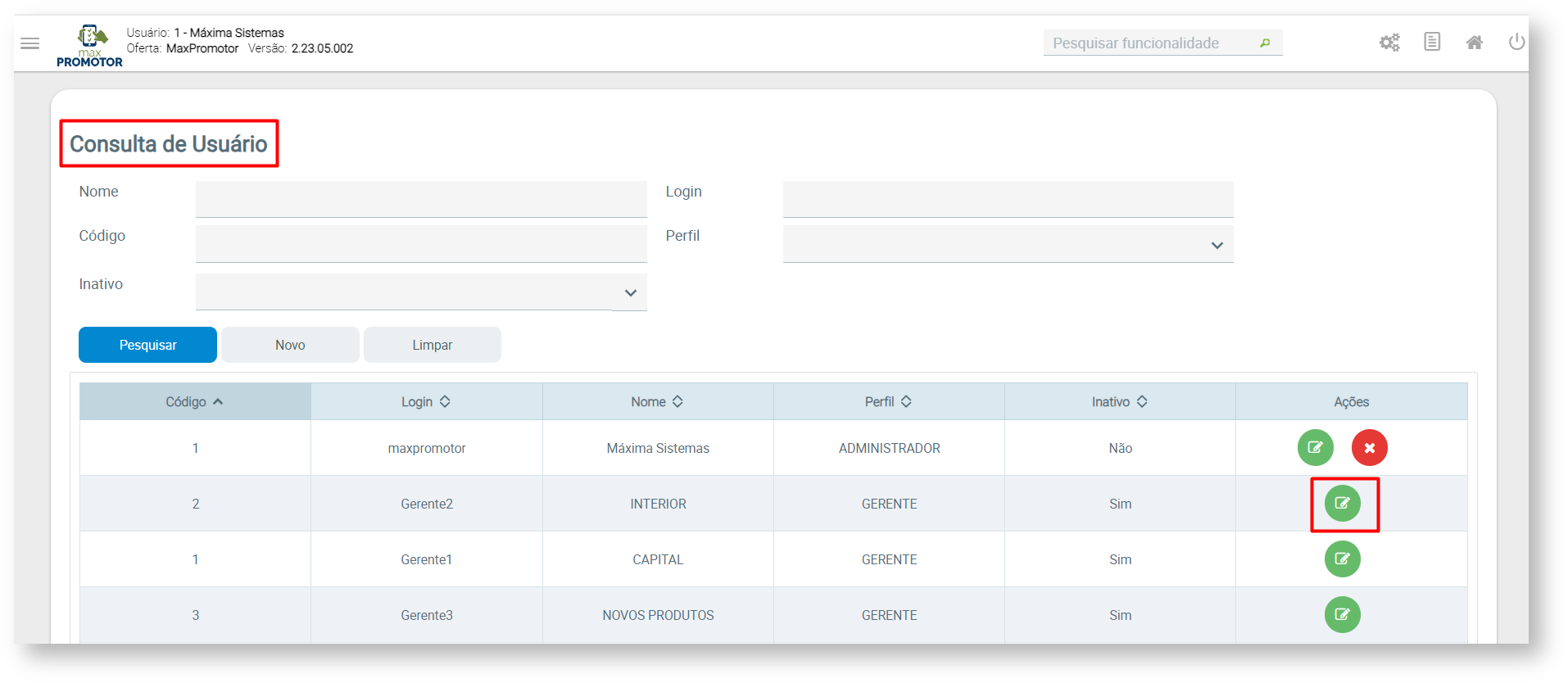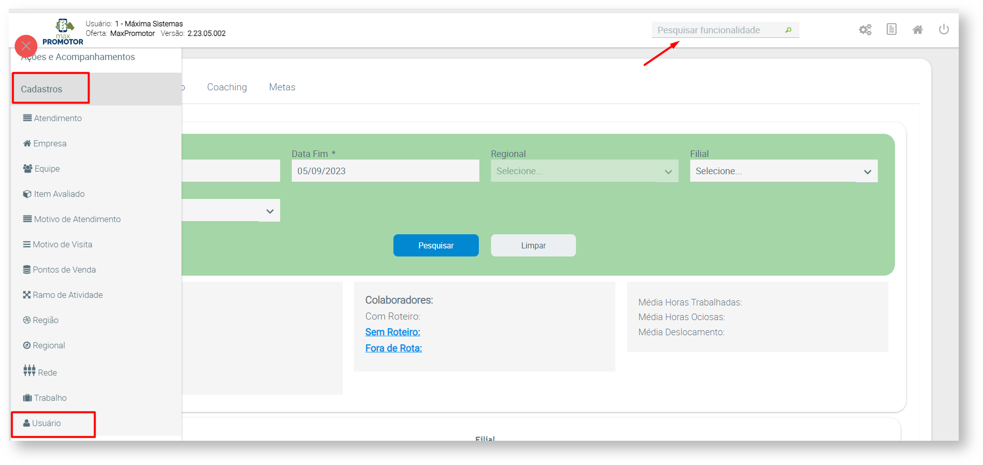 2.1 Acesse o Cadastro de Usuário, pelo menu lateral esquerdo ou pela funcionalidade, na barra de pesquisa