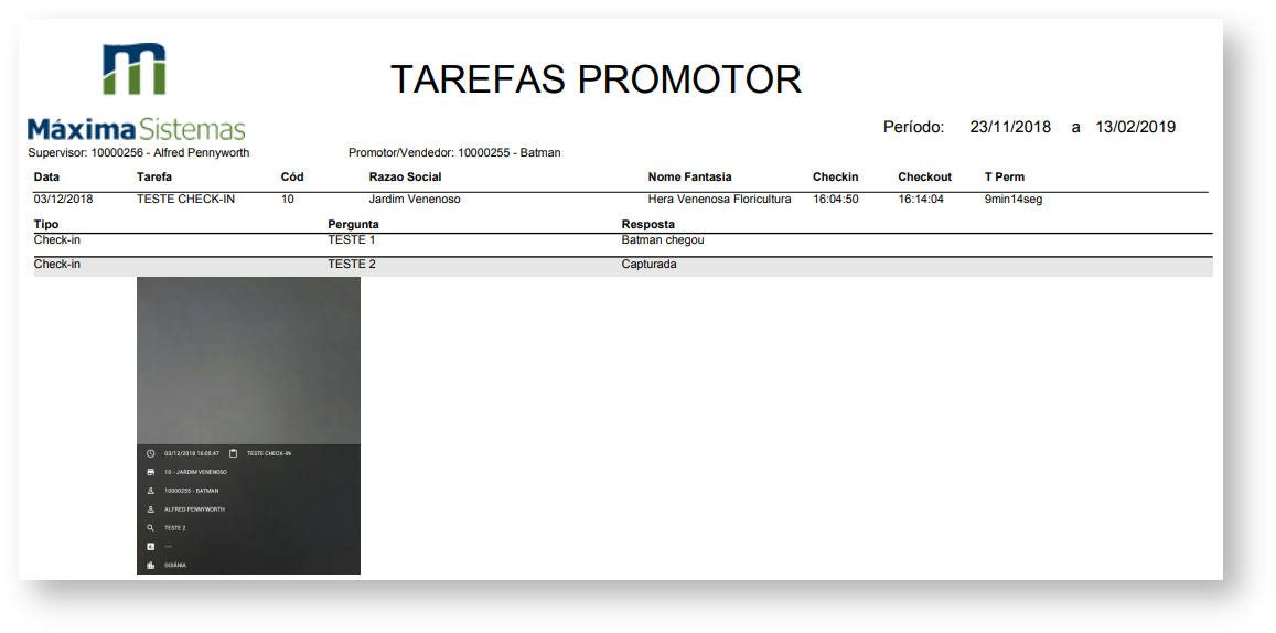 1.3 Ao ser gerado o relatório ele irá trazer as informações preenchidas pelos promotores para as tarefas.