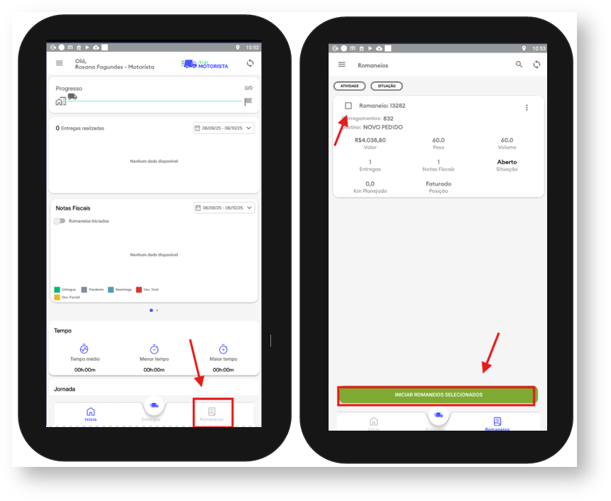 2- Selecione os romaneios e clique em Iniciar Romaneios selecionados