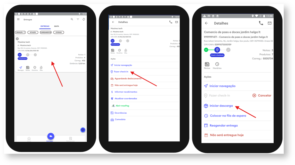3- Em entregas clique sobre o cliente e depois na opção Fazer check-in