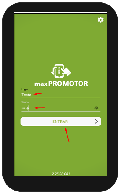 10- Insira o usuário e senha criados no MaxPromotor Web e clique em ENTRAR para acessar o aplicativo.
