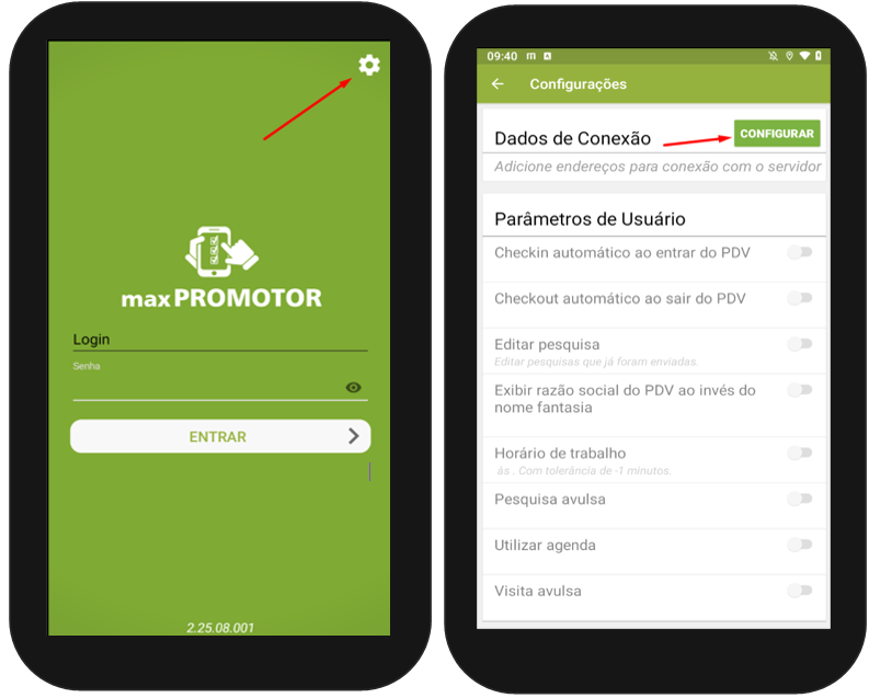Orientar o usuário sobre como realizar a configuração inicial do aplicativo MaxPromotor para o primeiro acesso, tanto para clientes que utilizam a nuvem da Máxima, quanto para os clientes que utilizam servidor local.