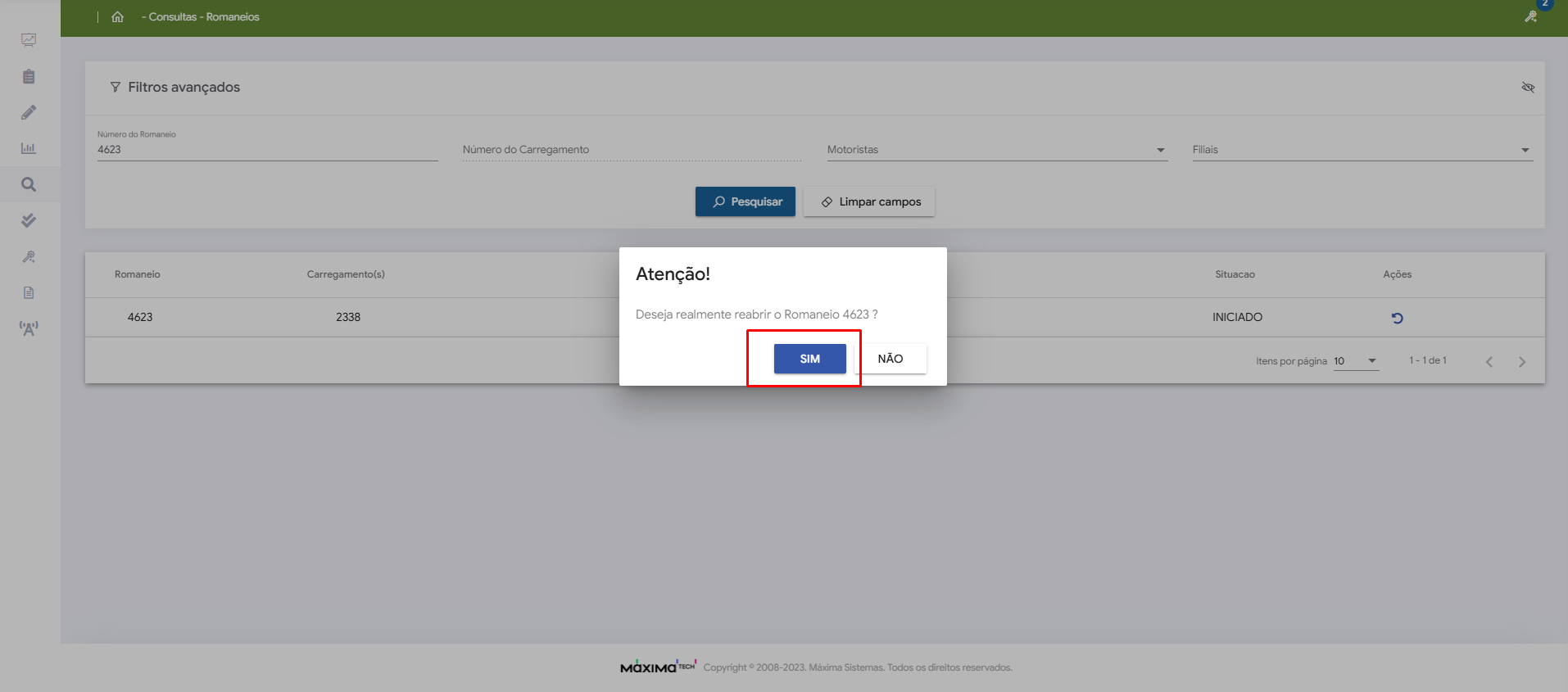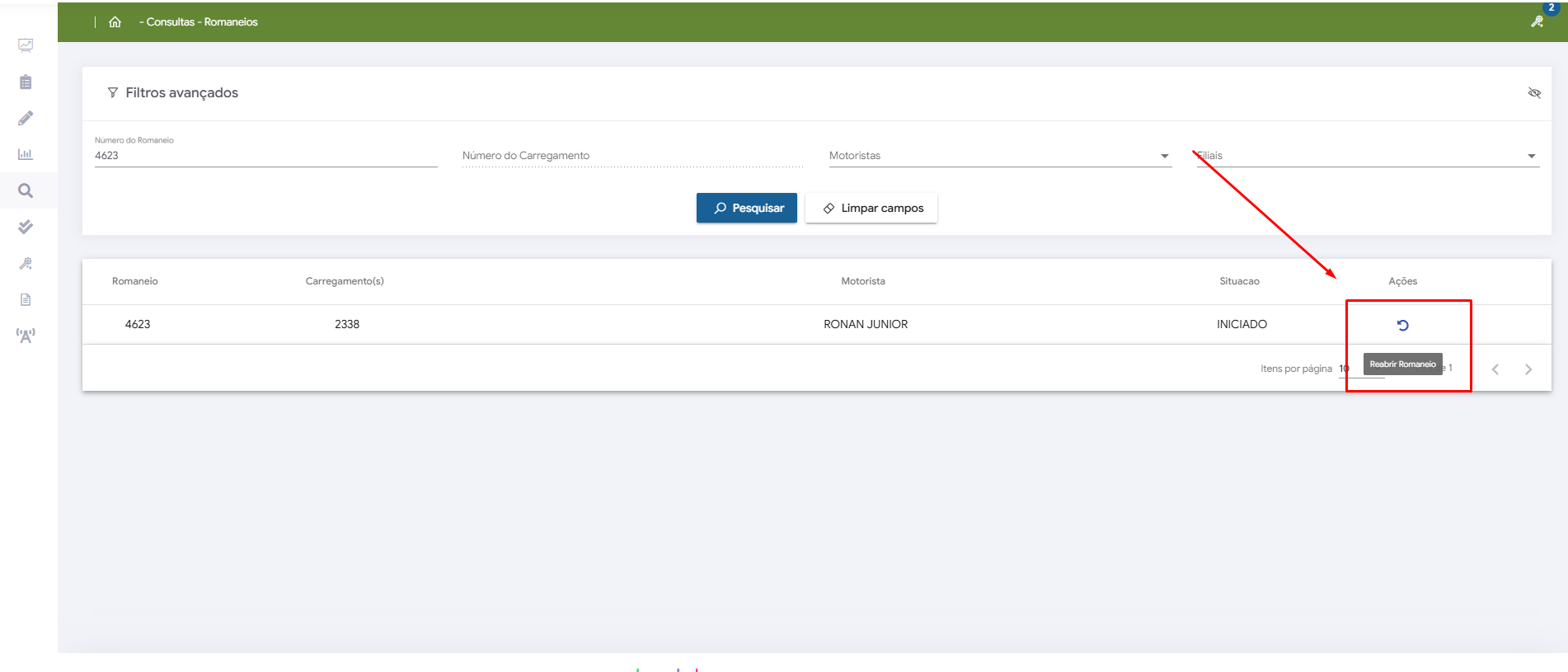 Como reabrir um romaneio ja iniciado ou finalizado