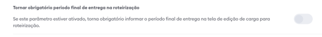 Instruções para ativar parâmetro do período de entrega final na roteirização