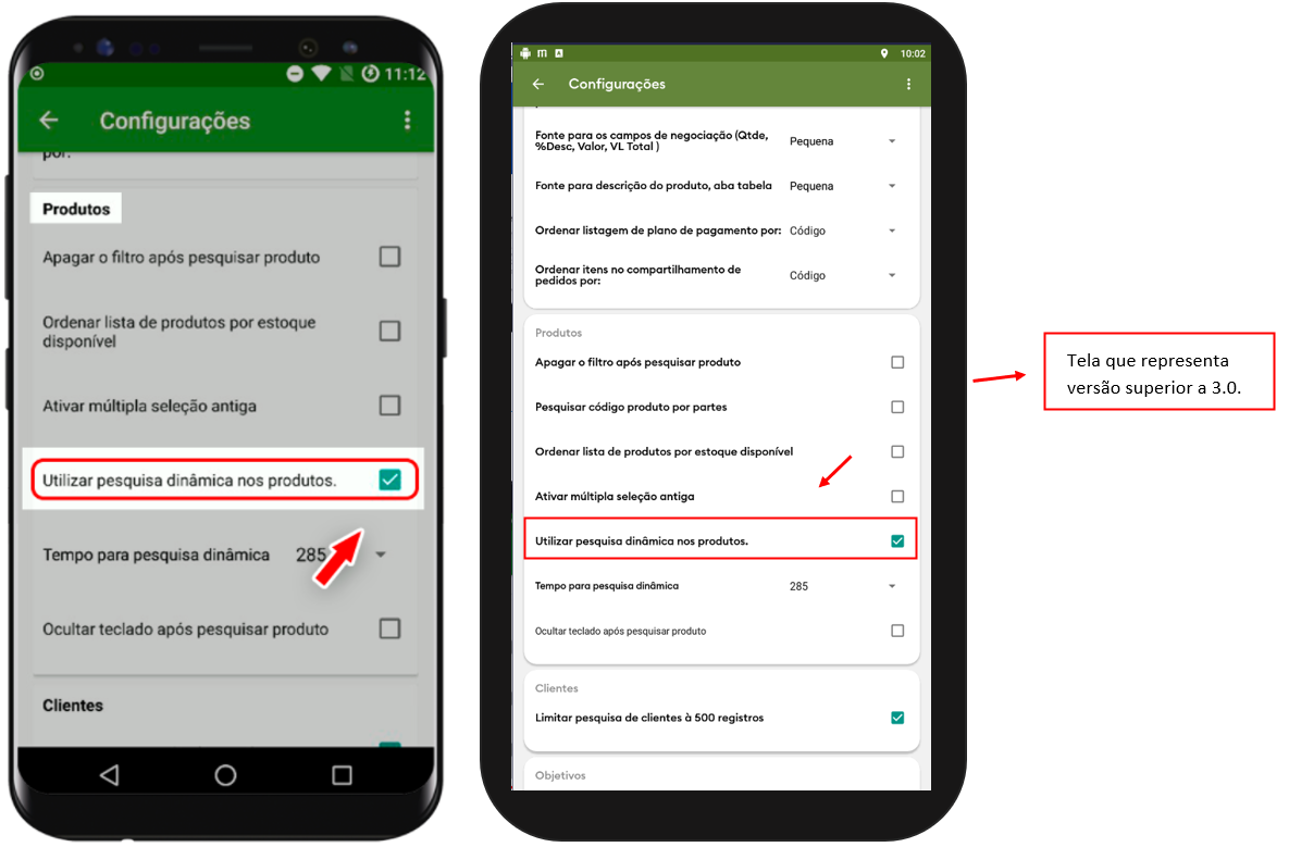 3. Na tela seguinte deslize para baixo até a sessão Produtos, e marque Utilizar pesquisa dinâmica nos produtos.