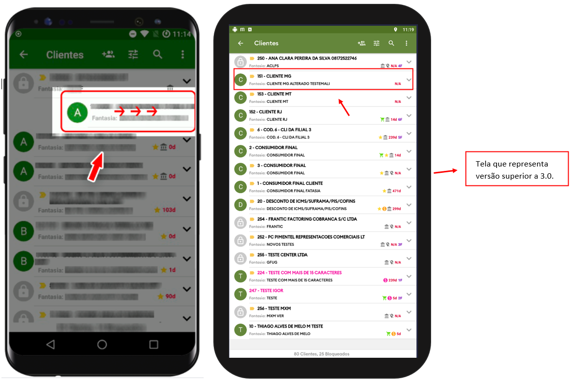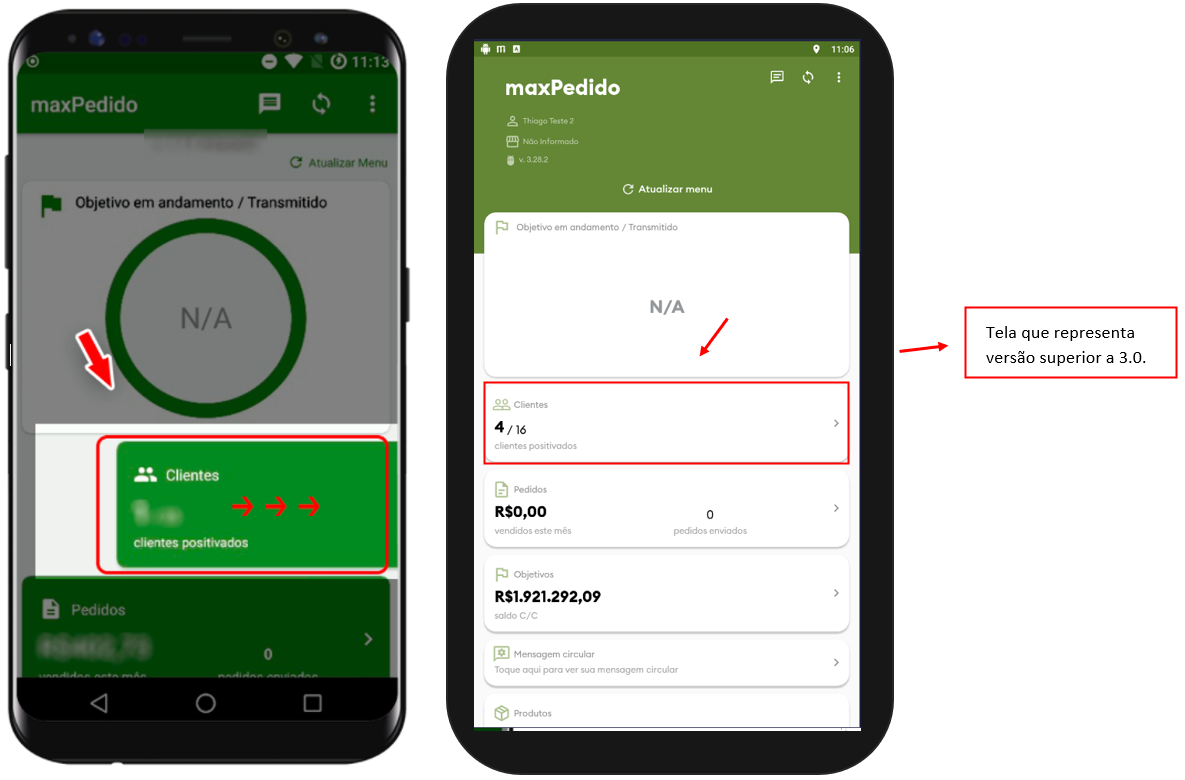 5. De volta à tela inicial do aplicativo, deslizar o Menu de clientes para a esquerda ou clique no mesmo para listar os clientes