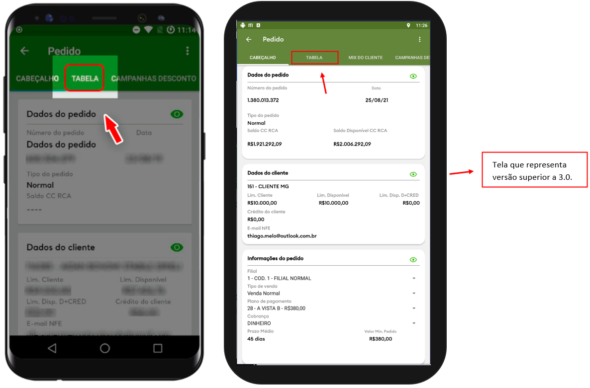 7. Já na tela de pedidos, vamos localizar a aba TABELA e clicar nesta opção.