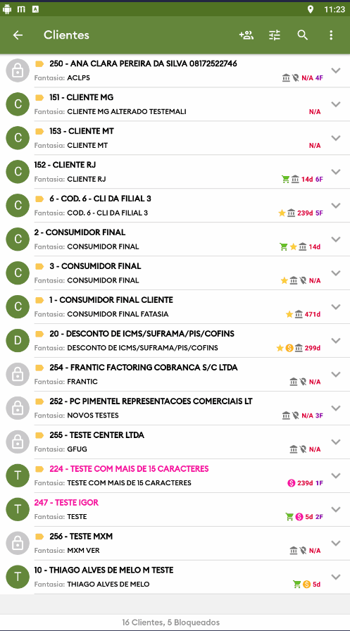 6. Selecione o cliente desejado ao realizar o mesmo movimento para iniciar um pedido