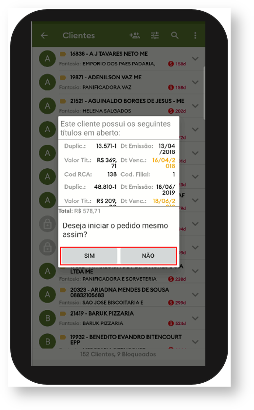 1.3 Esse parâmetro ativa um alerta para o representante ao iniciar o pedido seja  informando que aquele cliente possui títulos vencidos, dado assim opção do mesmo continuar ou não com a confecção desse pedido.