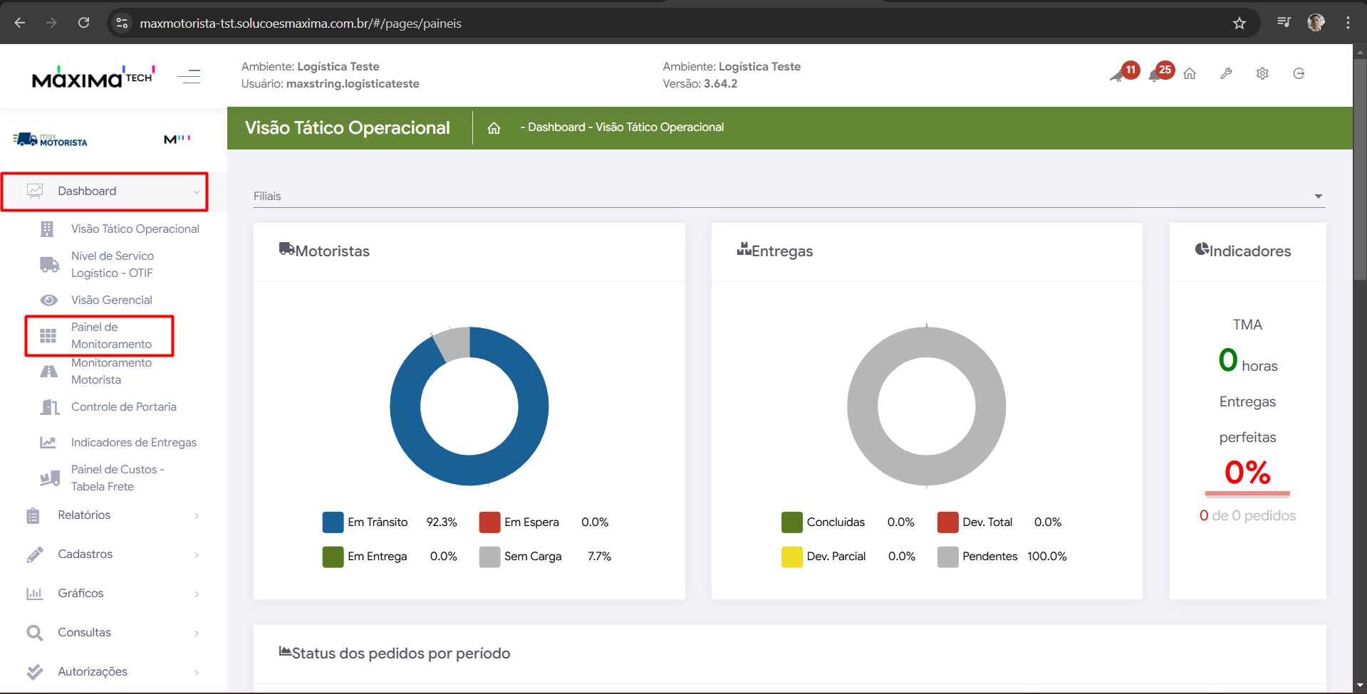 - Na aba de opções a direita, abra a opção Dashboard, depois Painel de Monitoramento.