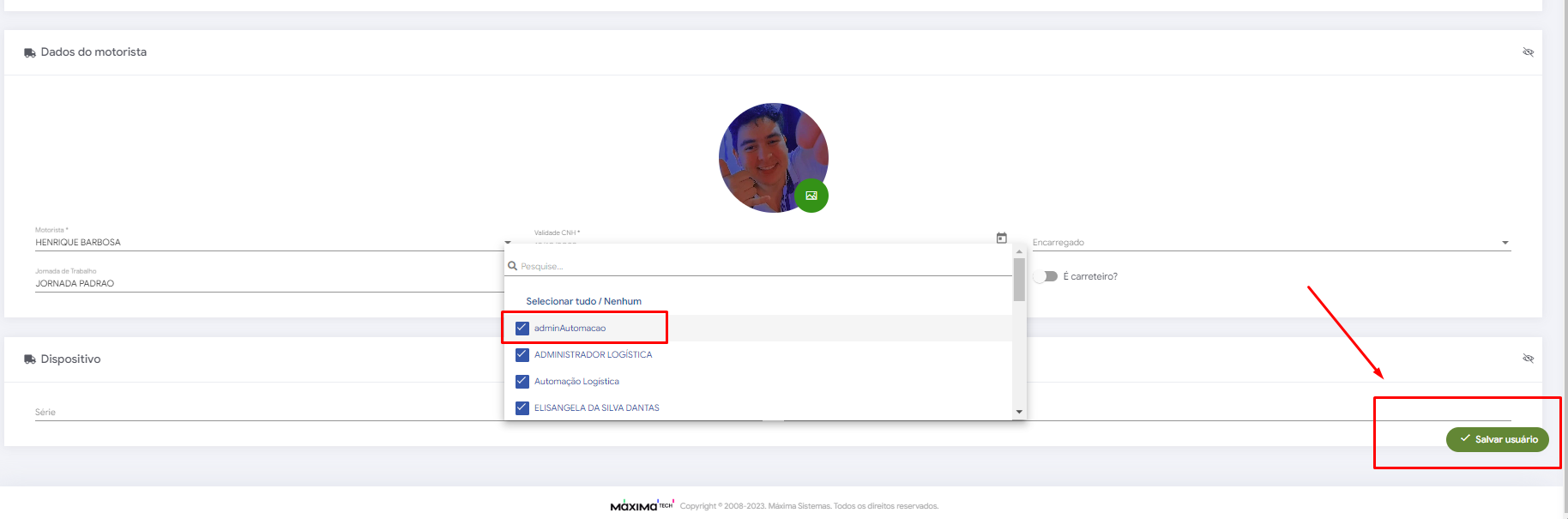 Instruções para o vínculo de usuário motorista ao seu usuário supervisor. Este processo é necessário para que o supervisor tenha visibilidade de seus motoristas no sistema MaxMotorista Web.