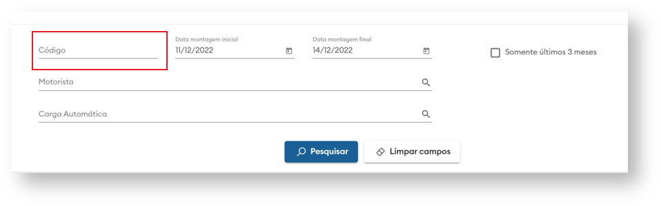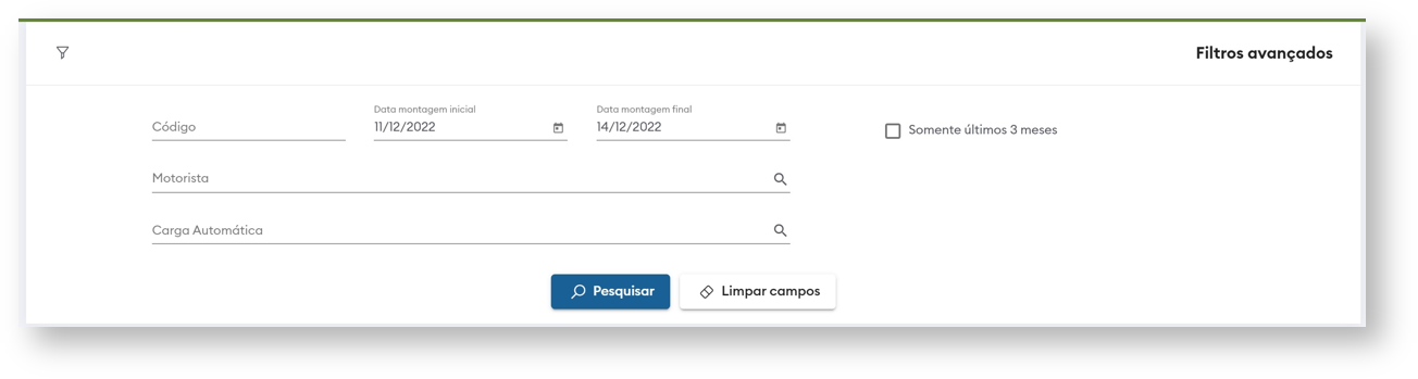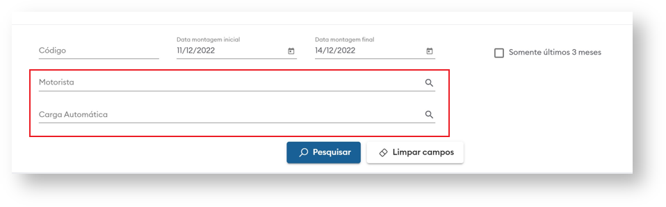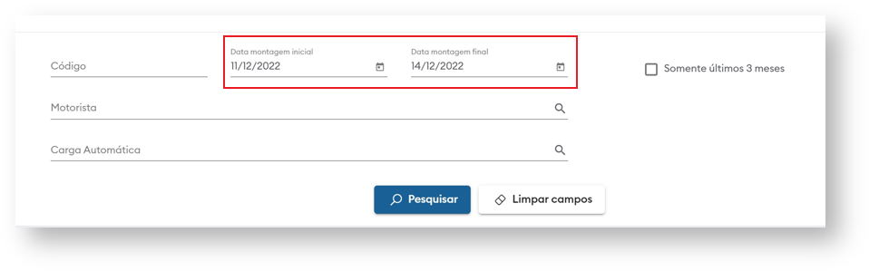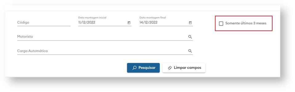 - Com a marcação da “flag” é possível filtrar somente os carregamentos criados nos últimos 3 meses.
