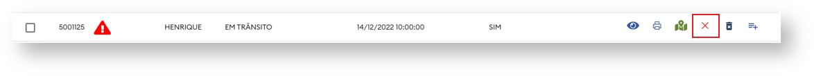 - Clicando no ícone abaixo é possível excluir pedidos do carregamento.