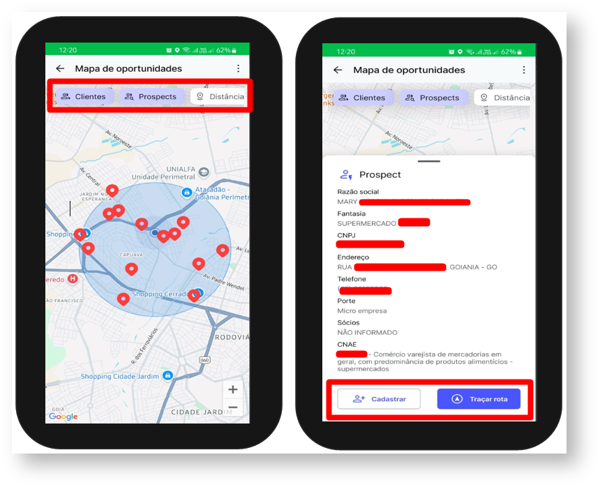 Mapa de Oportunidades, proporciona ao vendedor interface visual em formato de mapa, que exibe de forma clara e estratégica todos os clientes já positivados em sua carteira, bem como novas oportunidades de prospecção dentro de um raio pré-definido. Essa funcionalidade proporciona mais autonomia, agilidade no planejamento de rotas e aumento da eficiência nas visitas comerciais.