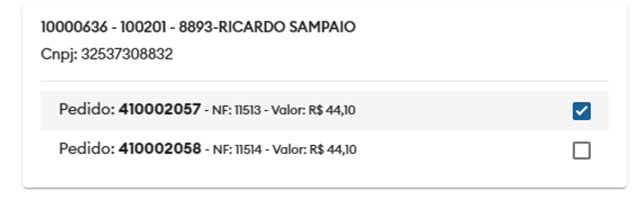 É possível selecionar múltiplos pedidos.