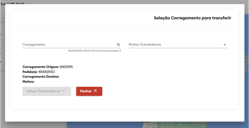 Caso o carregamento destino esteja cancelado ou fechado, não sera exibido para seleção, e se por engano digitou o número do carregamento origem, o mesmo também não irá aparecer.