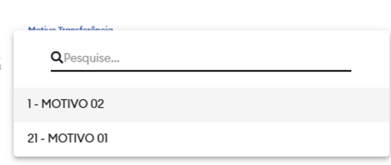 Por último, é necessário selecionar um motivo da transferência.