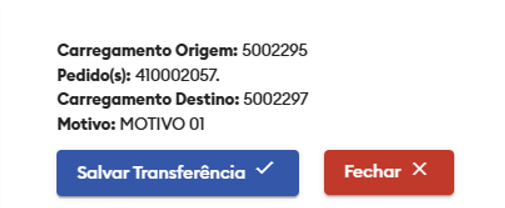 11 - Uma vez que o carregamento destino foi escolhido e informado o motivo, podemos finalmente salvar a transferência.