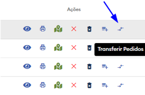4 - Ao clicar na ação de transferir pedidos, é feito o redirecionamento para a tela de transferência.