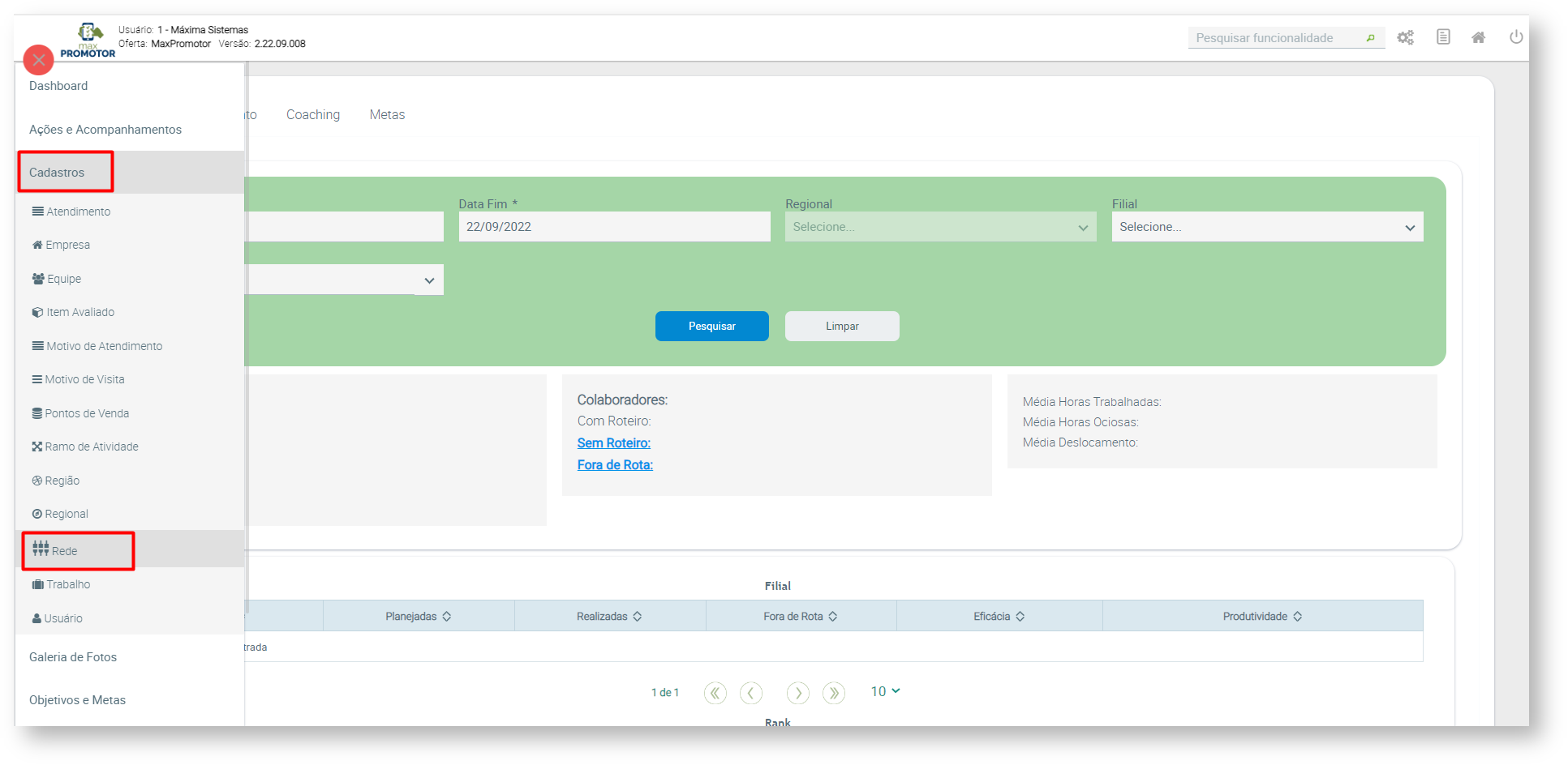1.1 Ao acessar a área administrativa do maxPromotor expanda o menu lateral esquerdo