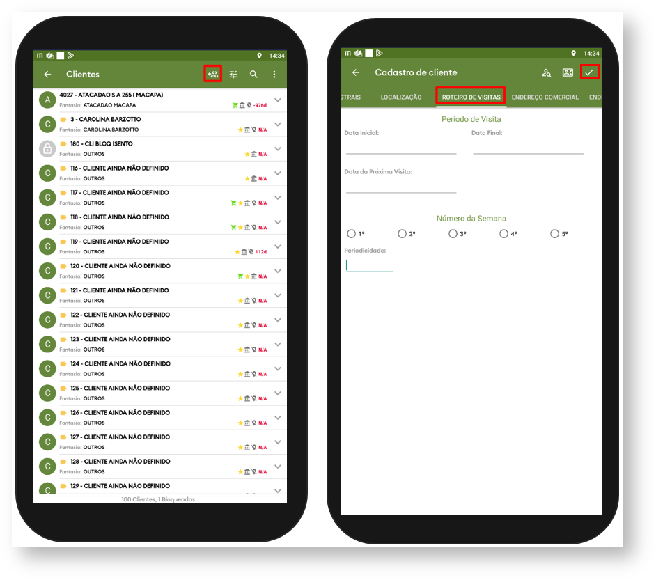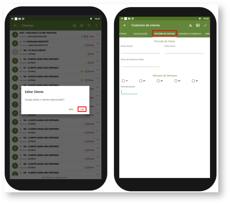 2.1.1Confirme para editar o cadastro do cliente e clique na aba Roteiro de Visitas e altere as informações conforme necessidade.