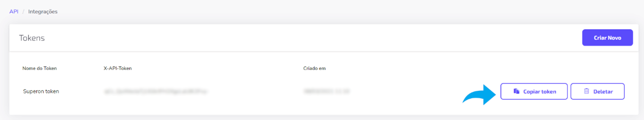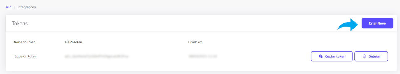 4 – Após aprovação, criar novo token de integração no menu Produtos -> tokens e webhooks: