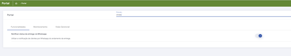 6 – No maxMotorista acessar o menu de configurações do portal e ativar parâmetro “Notificar status da entrega via WhatsApp” :