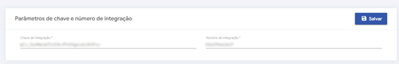 8 – Na tela de configuração inserir o token no campo chave de integração e o número do WhatsApp no campo Número de integração: