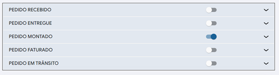 9 – Para cada status do pedido pode ser habilitado o envio de mensagem do whatsapp conforme imagem abaixo: