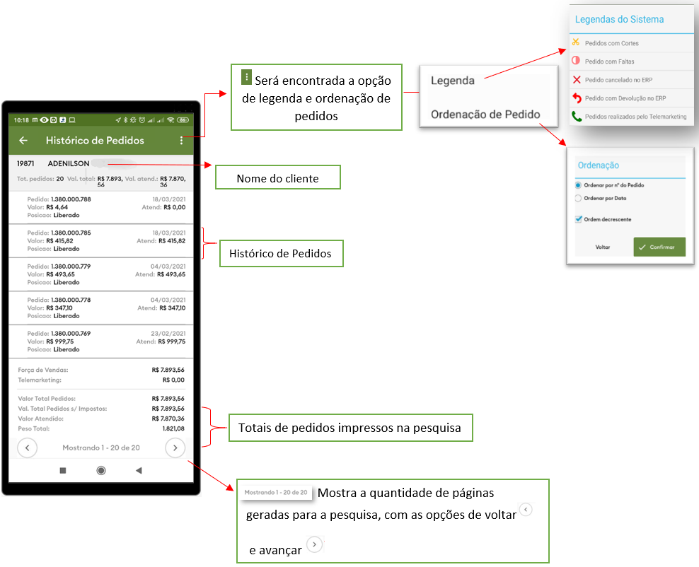 2.1 Em legendas do Sistema é possível identificar pela cor o status do Pedido;