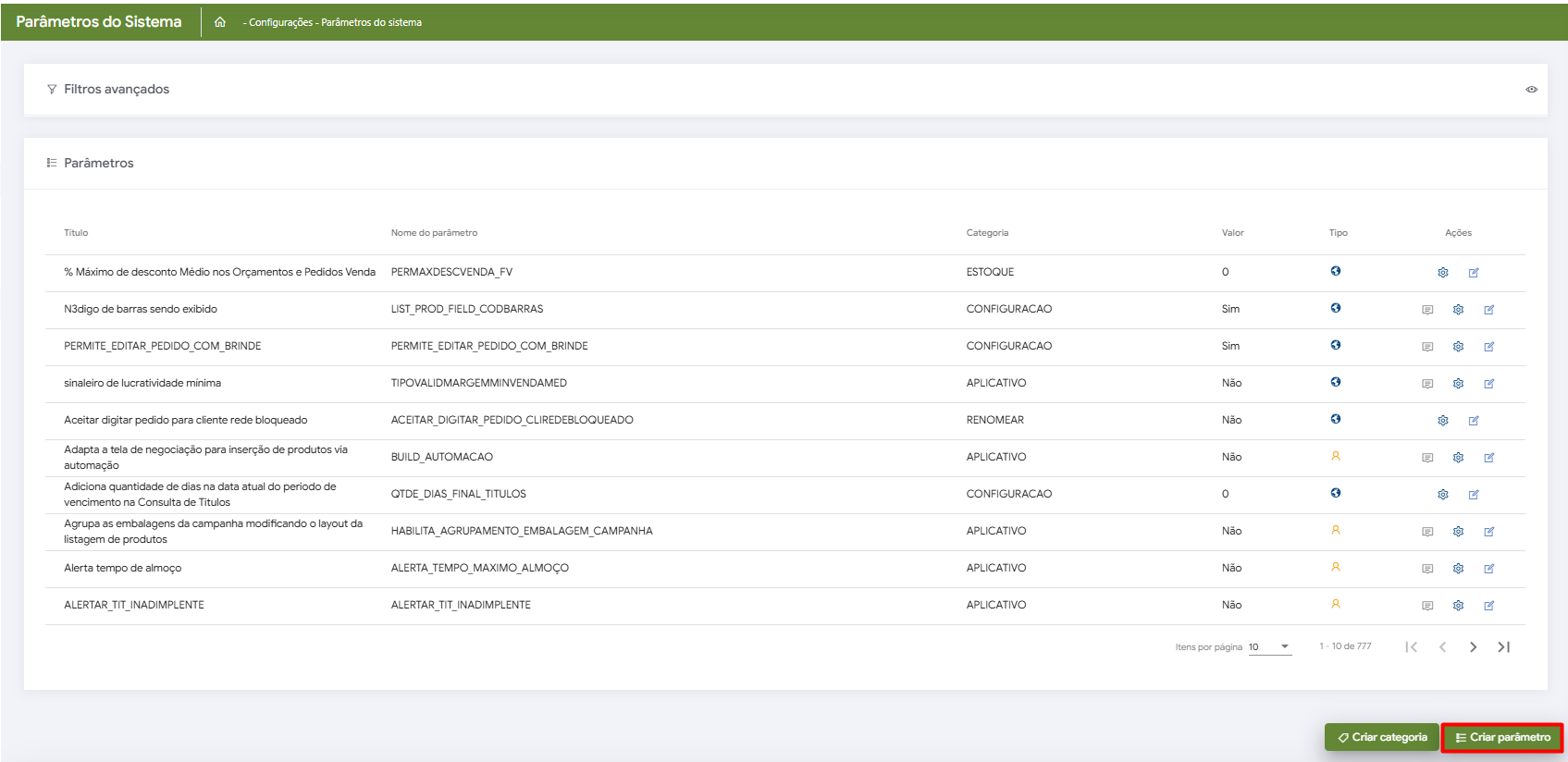 1- Acesse a Central de configurações do maxPedido, Menu lateral > Configurações> Parâmetros para criação do parâmetro PERMITE_CANCELAR_PED_BRINDE = S , forma Geral ou por Usuário do tipo Lógico.  Saiba mais