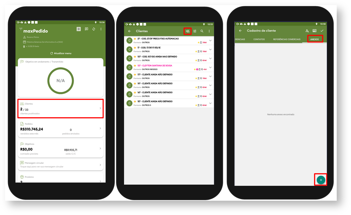 para inserir novo cliente, acesse a aba Anexos e clique no ícone  ao final da tela para incluir novo anexo.
