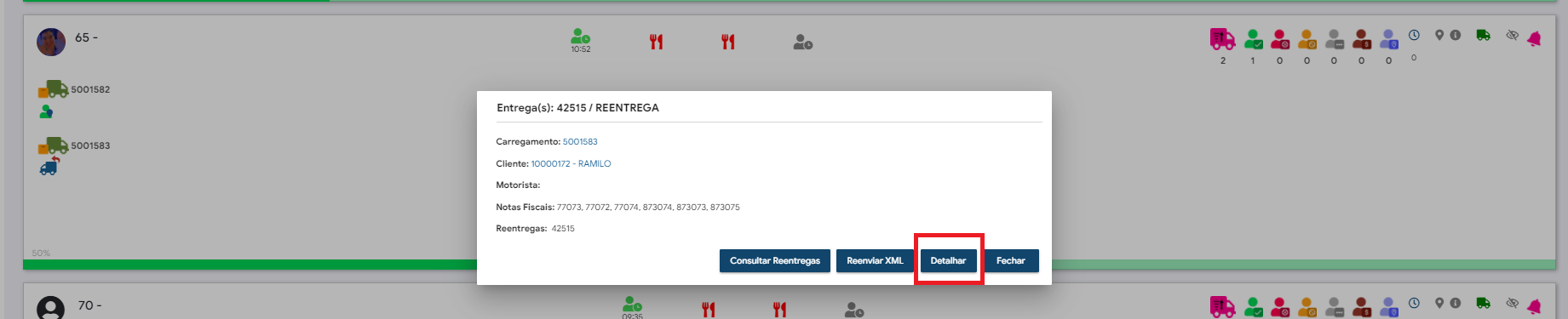 • Ao clicar na REENTREGA, abrirá uma nova aba trazendo a opção “Detalhar”: