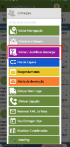 • Realizar o check in no cliente e iniciar a justificativa de descargas
