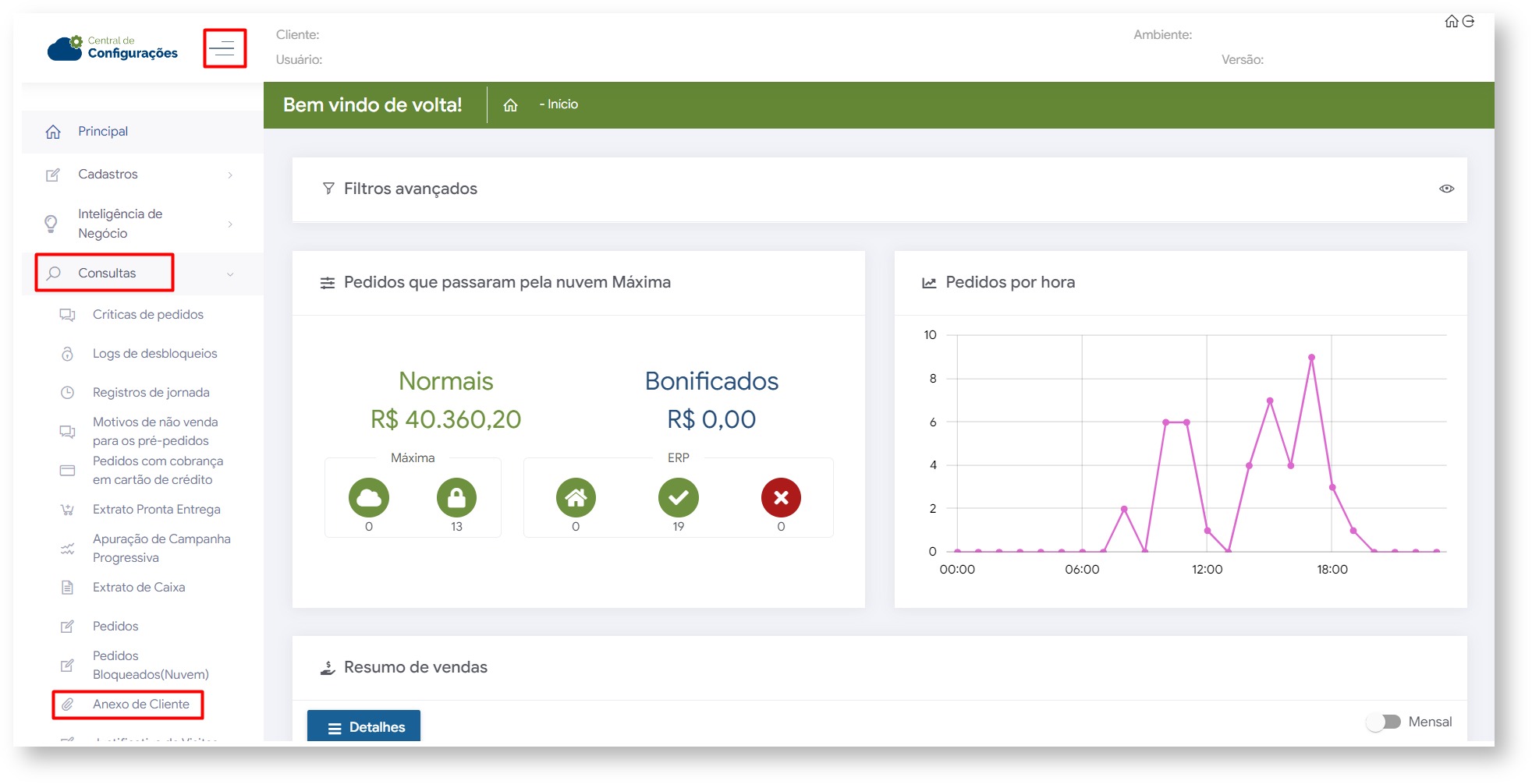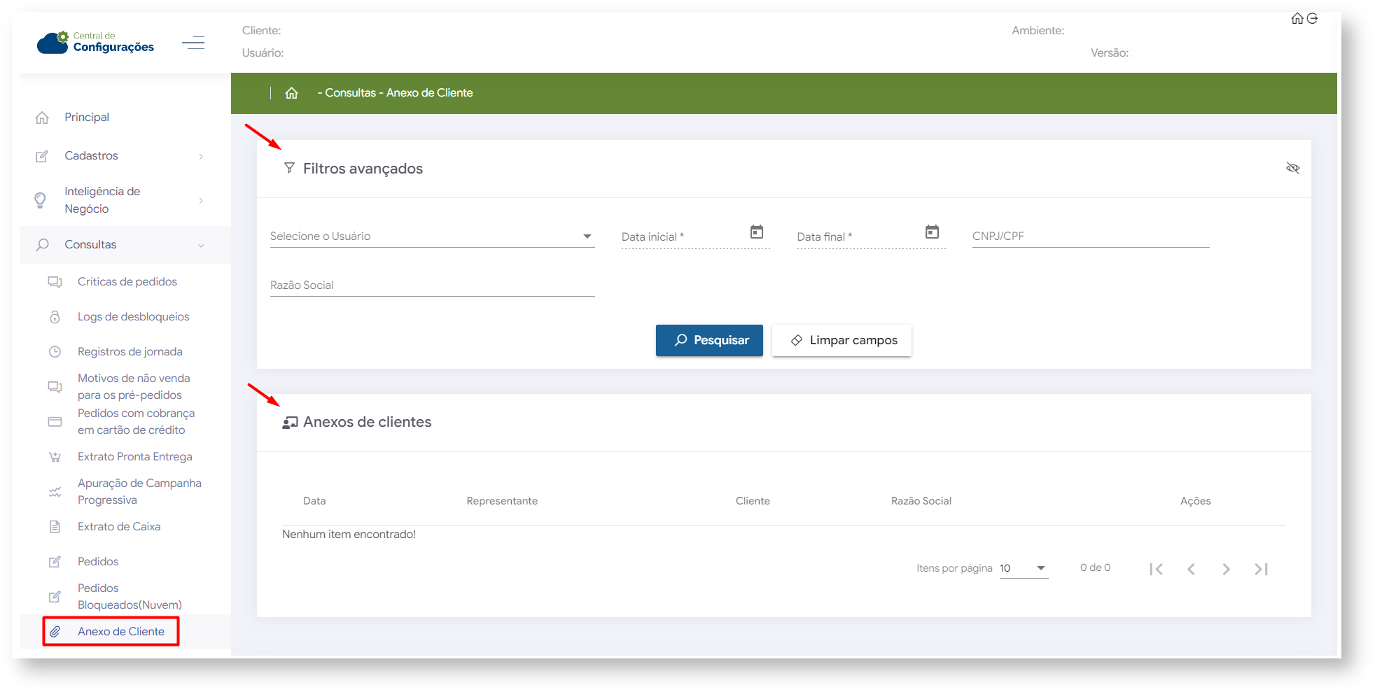 1.2 No Menu lateral a esquerda clique em consultas>> Anexos de Clientes.