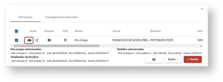 3 – Após a roteirização, na aba de “Pré Cargas”, clique em “Abrir visualização da Rota”.