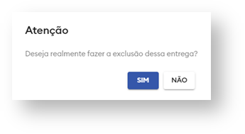 5 - Ao clicar na em “Remover Entrega” uma janela de confirmação é exibida.