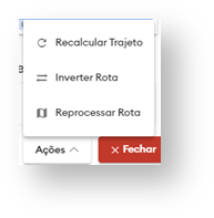 9- A Opção de Recalcular Trajeto e Reprocessar Rota estão disponível no botão de ações.
