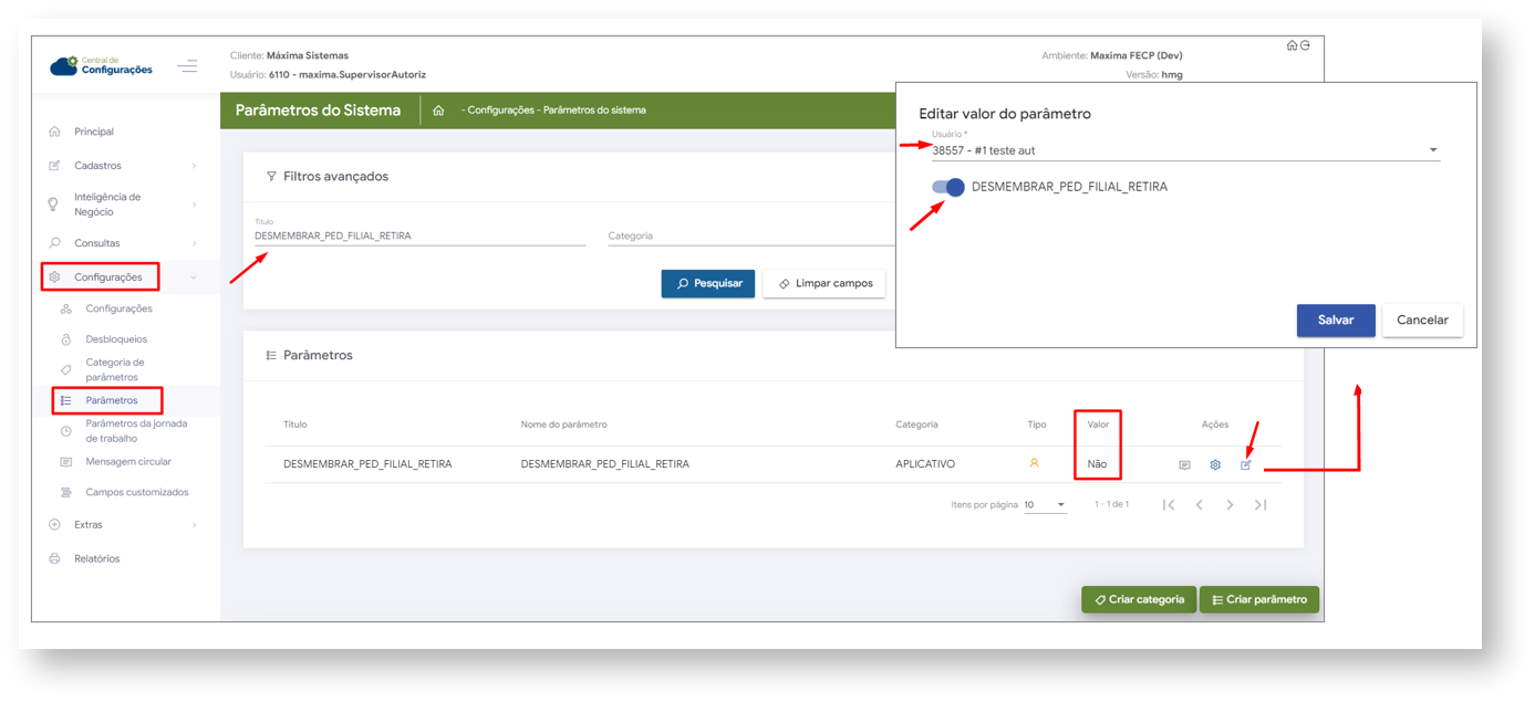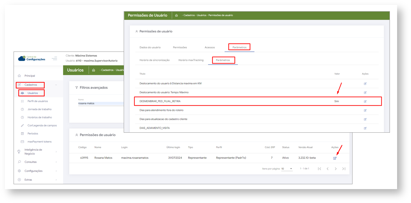 7 Ao cadastrar um parâmetro por tipo usuário, ao habilita-lo na tela geral de parâmetros o valor seu valor continuará como NÃO nessa tela, ficará como SIM somente no cadastro do usuário ao qual foi habilitado, conforme segunda imagem apresentada.
