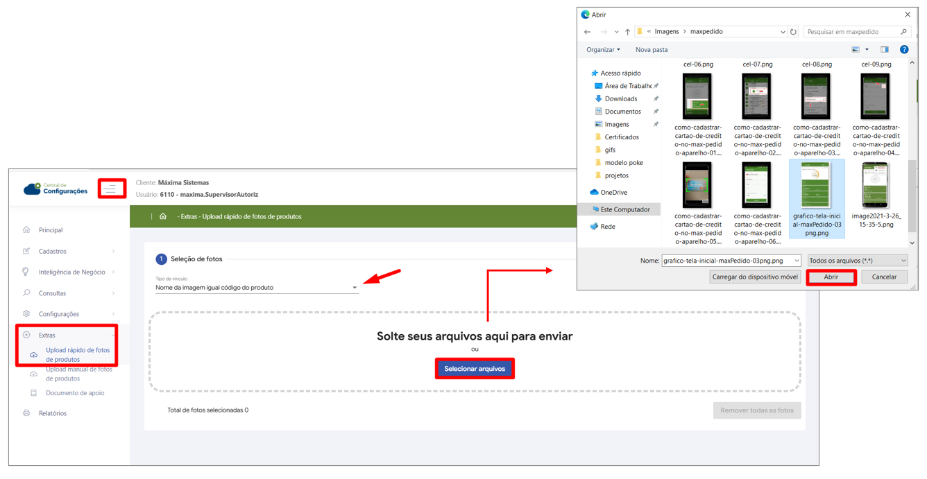 3- Ao clicar na opção de selecionar arquivos, selecione as fotos que deseja