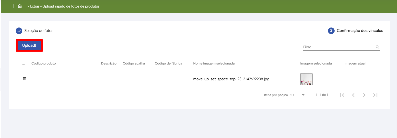 6- Selecione o produto e clique no ícone de Nuvem da coluna Ações para selecionar a foto