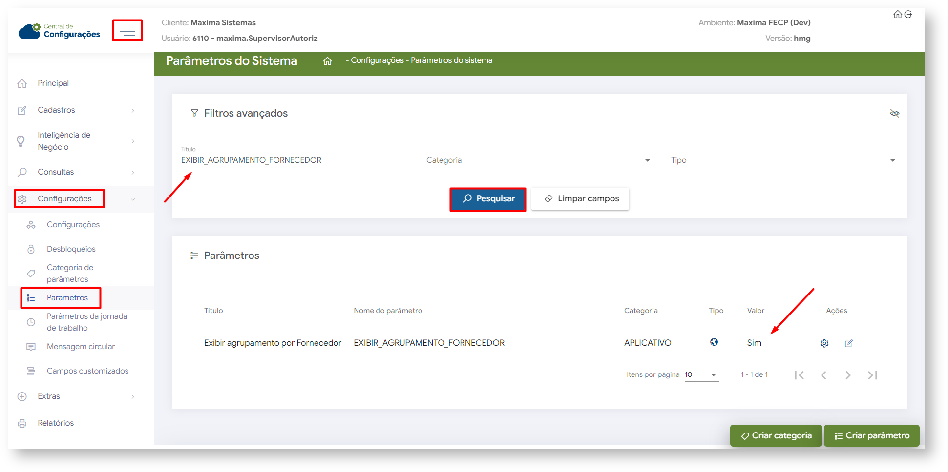 1- O parâmetro EXIBIR_AGRUPAMENTO_FORNECEDOR deve estar configurado como SIM na Central de configurações> Configurações> Parâmetros.