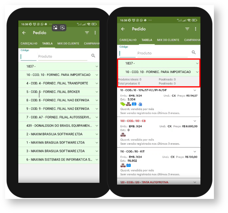 6- Clique sobre o Fornecedor para abrir a lista de produtos